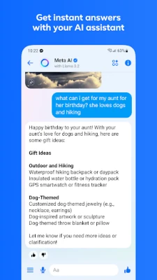 Ask questions, get ideas, and create messages with the help of Meta AI directly inside your chats (available in selected regions).